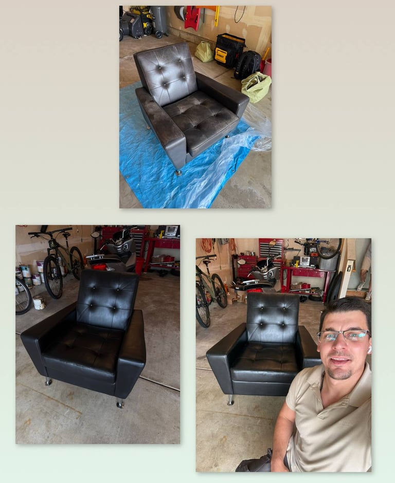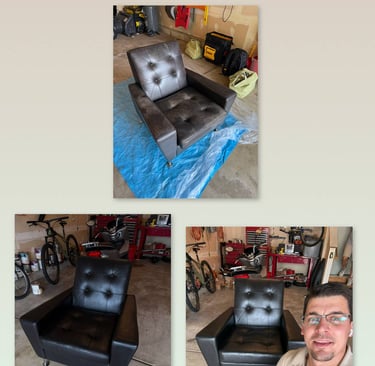 I specialize in professional leather and vinyl restoration, repair, and recoloring. Every piece you see in this gallery has been restored by me personally — from sofas and chairs to recliners and car seats.